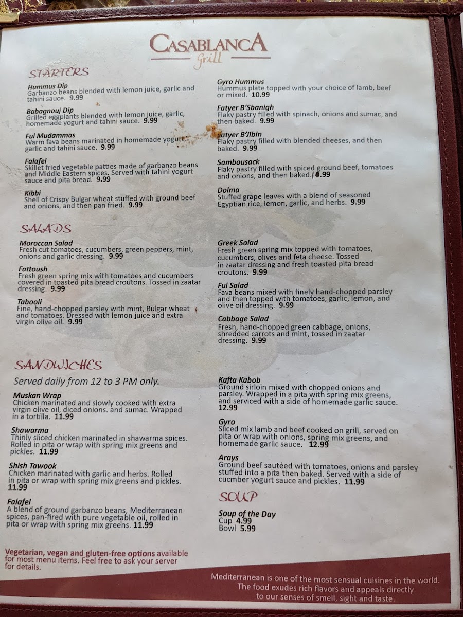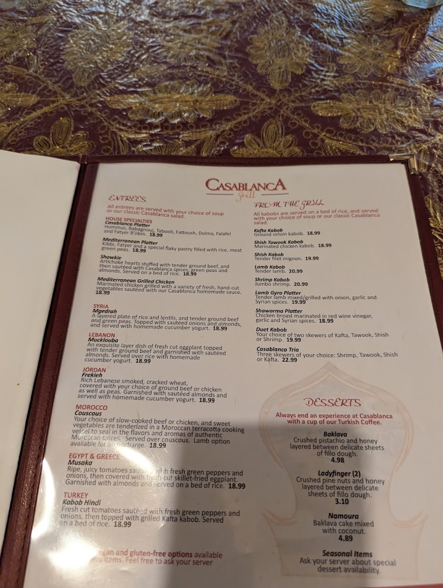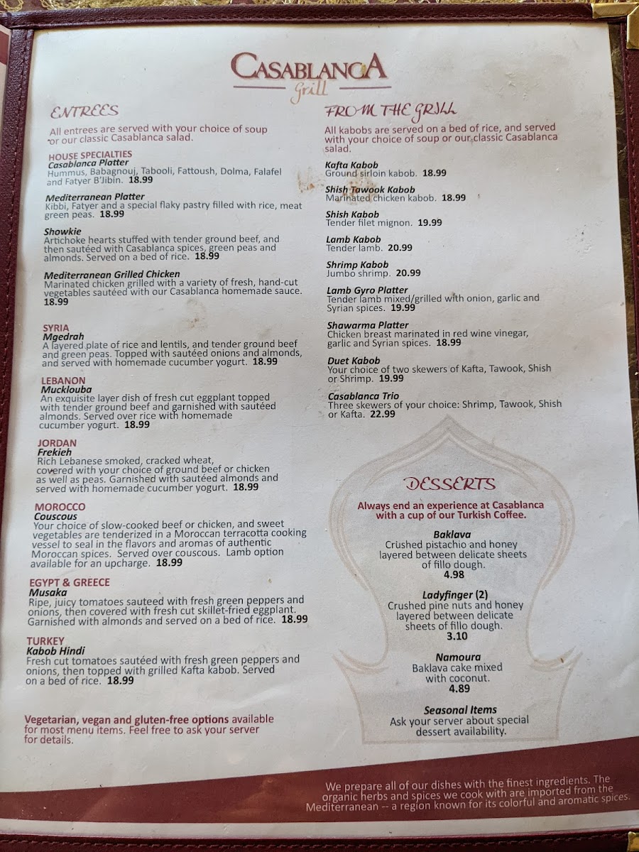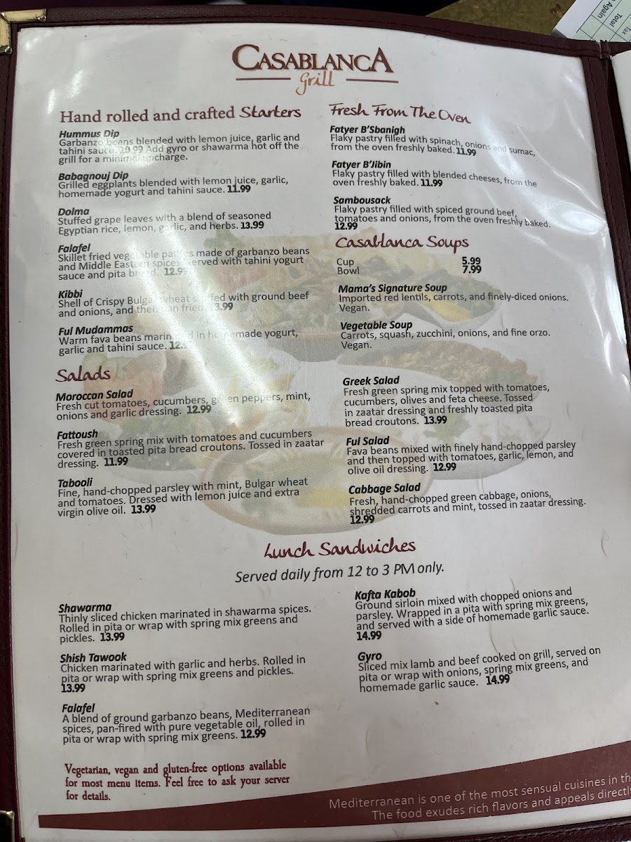 With dishes reminiscent of home-cooked meals, each bite reflects the dedication and artistry behind Casablanca Grill’s menu. Visitors leave feeling not just satisfied, but truly cherished.